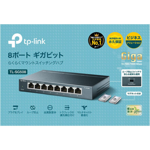 ティーピーリンクジャパン 8ポート マグネット付き Giga 10/100/1000Mbps スイッチ 金属製筐体 TL-SG508 JP