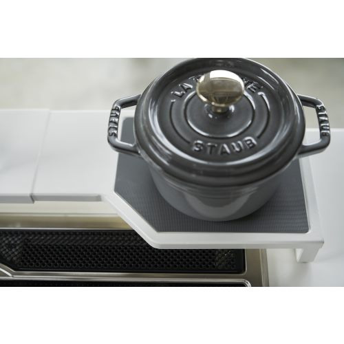 ●コンロ奥を有効活用できる伸縮式のラック。