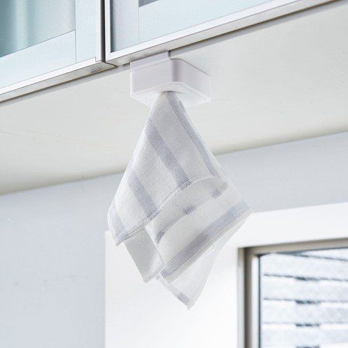 ●タオルや布巾を指で差し込むだけのタオルホルダー。戸棚下にも取り付け可能。