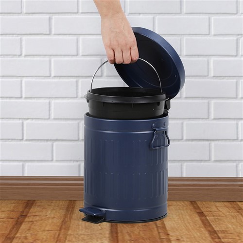 [3L]ヤマダオリジナル 中バケツが取り出せるペダル式ゴミ箱 スチール ネイビー YPP03NV