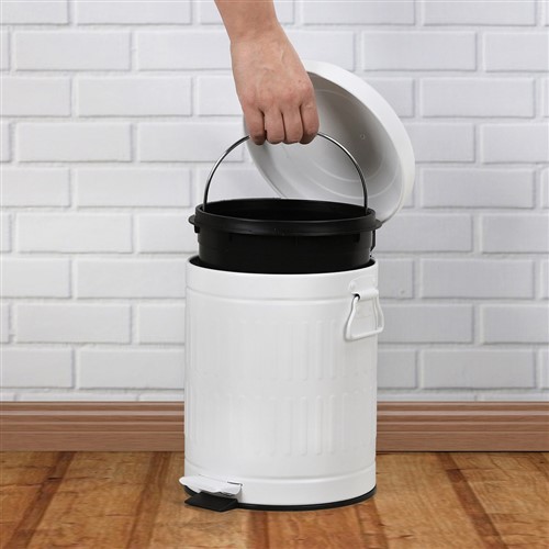[5L]ヤマダオリジナル 中バケツが取り出せるペダル式ゴミ箱 スチール ホワイト YPP05WH