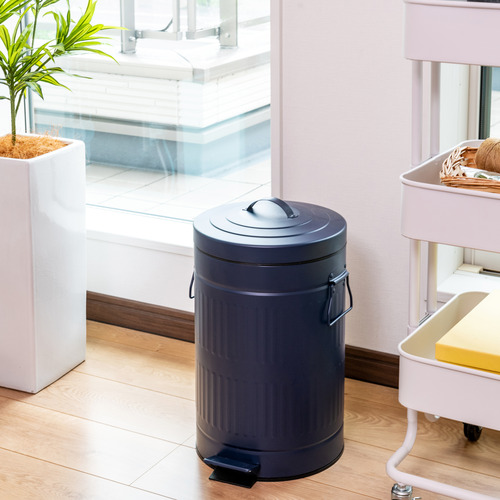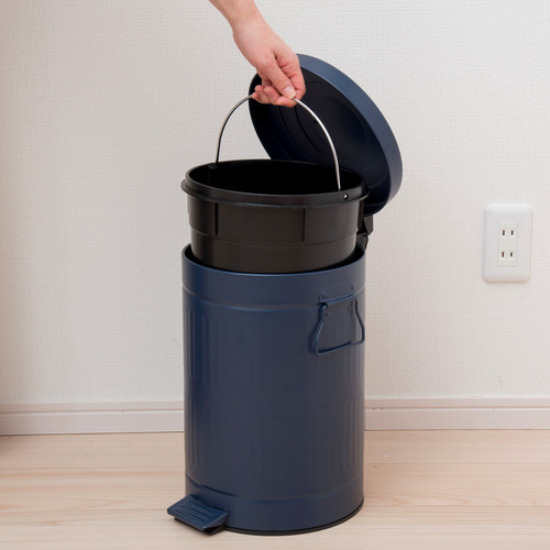 [12L]ヤマダオリジナル 中バケツが取り出せるペダル式ゴミ箱 スチール ネイビー YPP012NV