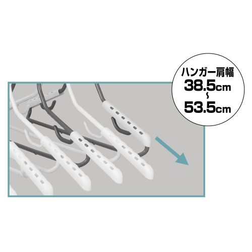 ●洗濯物にあわせてきれいに干せるスライド式肩パット付きです。