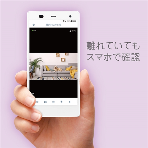 ●フルHD(※フルHD/HD映像に設定すると、宅外接続の際、データ量が多くなるので、パケット通信料が高くなります。ご契約のインターネット回線がxDSLなどでインターネット上り回線速度が低いような場合は、宅外接続で画像などが正常に表示できない場合があります。スマートフォン1台あたりインターネット上り帯域で3Mbps以上の通信環境が必要です。※)、広画角レンズでお部屋をひろびろ確認できます。