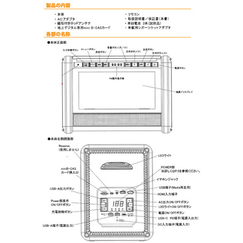 ●業界初のポータブル電源! 電源なのにテレビ/ラジオを搭載