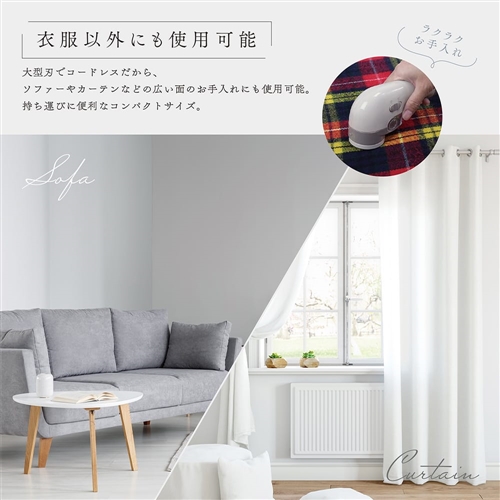 ●3段階で毛足の長さを調節できるアタッチメントと直径約50mmの大型刃で衣類以外にもソファやカーテン等のお手入れが可能。