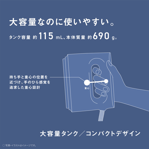 115mLの大容量ながら、約690gと軽量。そして、腕の負担に配慮した重心設計。