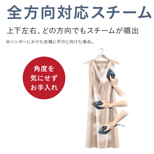 高温・中温・低温の3段階スチームで、素材に合わせてスチームが選べます。シルクやアクリルなどのデリケートな衣類もやさしくお手入れ可能です。また、どの向きでもスチームが出る「全方向対応スチーム」なので角度を気にせずラクラクお手入れできます。従来機種よりスチーム量が約16g/分に増えました。(従来機種:CSI−RX70平均スチーム量約14g/分)