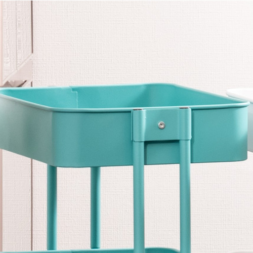 不二貿易 キッチンワゴンバスケット3段 ターコイズブルー