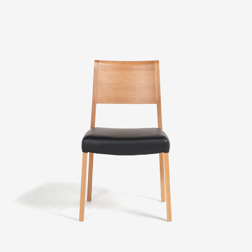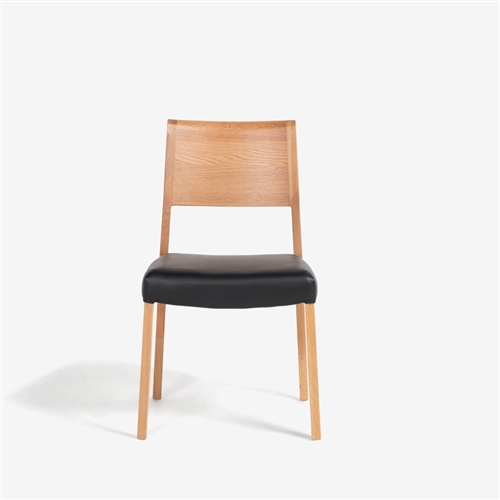 天然木のオーク材を使用したダイニングチェアです。座面裏にはウェービングテープを施していますので、底突き感の少ないすわり心地が特徴です。
