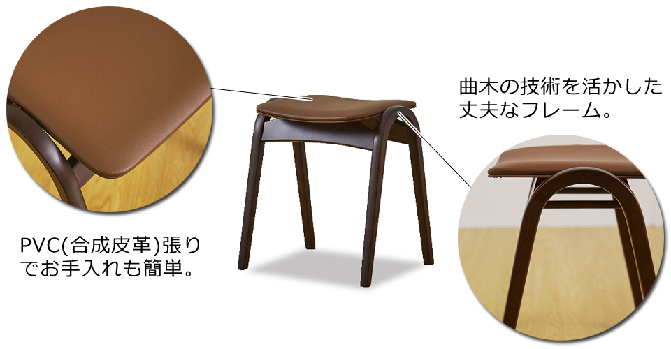 塗装:ウレタン塗装(低ホルムアルデヒド仕様) IDC大塚家具 スツール202PVCBR/WN色ブナ
