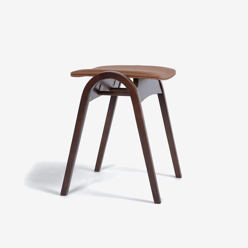 ●剣持勇の代表作〜重ねることができる使い勝手の良いスツール「202」PVCブラウン/ブナ材ウォールナット色