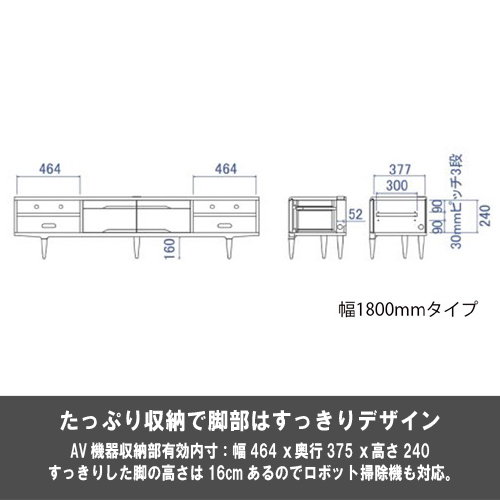 AV機器収納部有効内寸:幅464x奥行375x高さ240