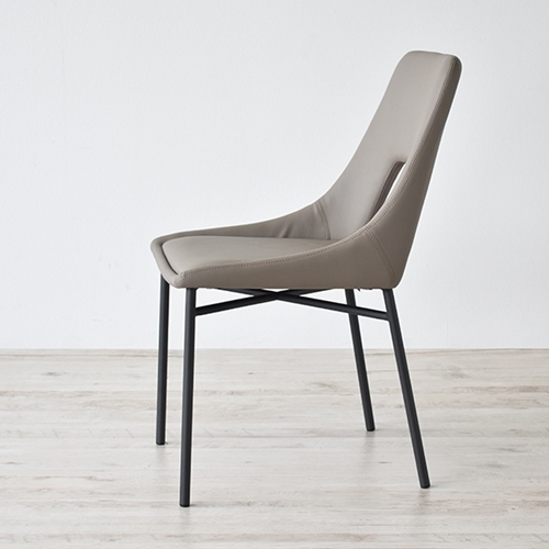 ●ブラックスチールとグレートーンの合成皮革を合わせたモダンテイストのダイニングチェア「レイラ」