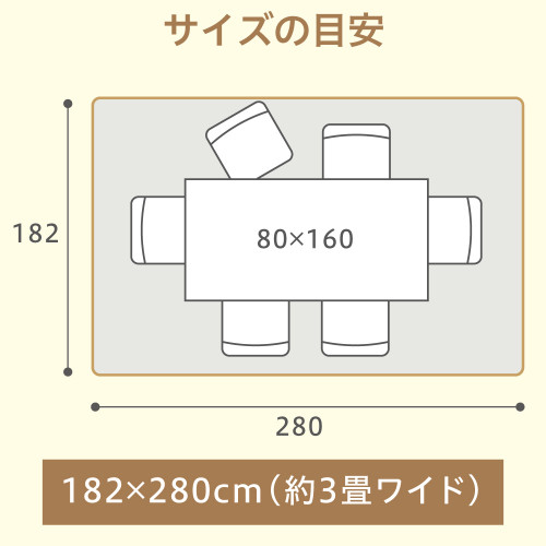 サイズの目安<br>182×280cm(約3畳ワイド)