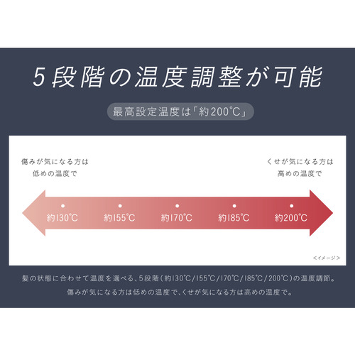 アイロン部温度:約130/155/170/185/200 ℃(5段階)