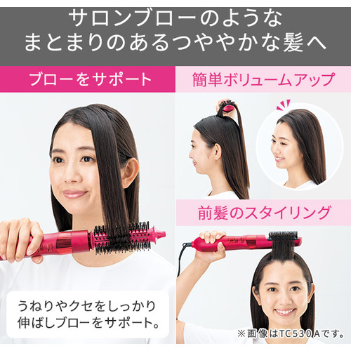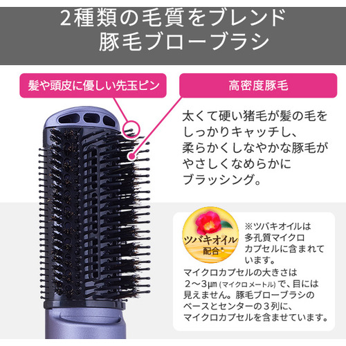 硬さの異なる2種類の天然毛を植毛したこだわりのブローブラシで、サロンブローのようなまとまりのあるつややかな髪へ導きます。