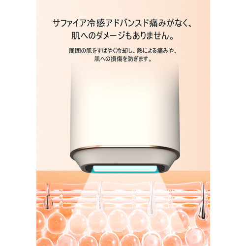 特大サファイアガラスを採用し脱毛時に皮膚の最低体感温度を驚異の約15℃まで下げられるので、痛みの感じやすい部分も負担を和らげます。