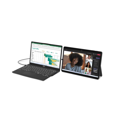メインのパソコンにFMV LOOXを接続するだけで、接続相手のマウス・キーボードを使ってFMV LOOXを操作できます。ファイルも相互に共有可能です。