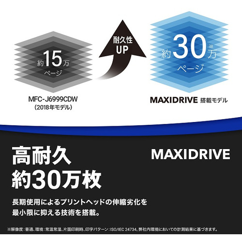 インクジェットで約30万ページまたは7年間の高耐久を実現。廃インクパッドの交換も必要ありません。