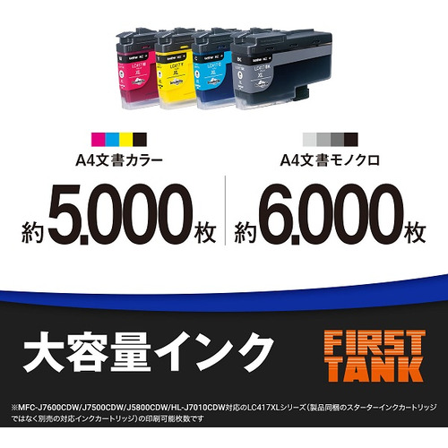 カラー約5,000枚、ブラック約6,000枚の大容量インクカートリッジを搭載。インクの交換や購入の手間を軽減することができます。