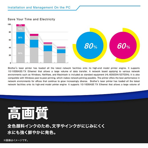 1分間にA4カラー約30ページ、A4モノクロ約30ページという高速印刷を実現。オフィスの作業効率アップに貢献します。