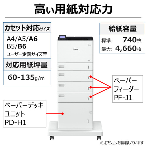 用紙サイズ:【給紙カセット】A4/B5/A5/A6/B6/リーガル/レター/ユーザー定義サイズ(幅:99.0〜216.0mm×長さ:148.0〜355.6mm)【手差しトレイ】幅:76.2〜215.9mm×長さ:127.0〜355.6mm