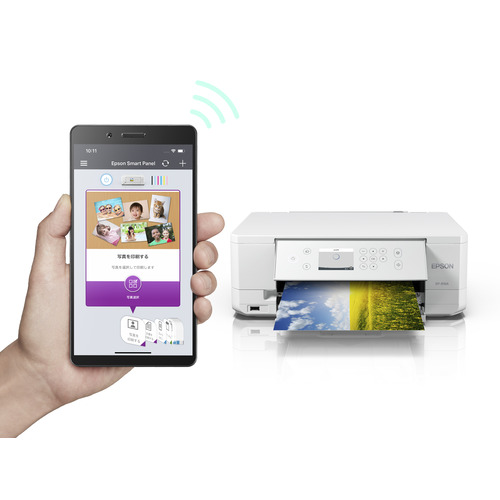 スマホとの接続がカンタン!スマホを本体に近づけて機種名を選択するだけで接続が完了(Bluetooth LEを使ってWi-Fi Direct接続)、さらに、QRコード接続にも対応。また、アプリ「Epson Smart Panel」を使うことでスマホからプリンターの操作も可能になります。スマホに入っているPDFの文書や写真など、思い立ったらすぐにプリントすることができます。また、様々なレイアウトで写真をプリントできる「Epson Creative Print」や年賀状を作成できる「スマホでカラリオ年賀」など、豊富なアプリを用意しているのでスマホでプリントする楽しさが広がります。