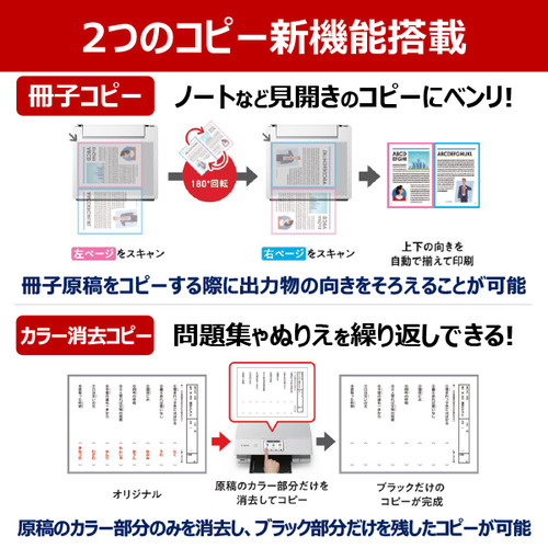 新機能 色消しコピー搭載でカラー部分を消去して、ブラックだけを残して印刷できる!