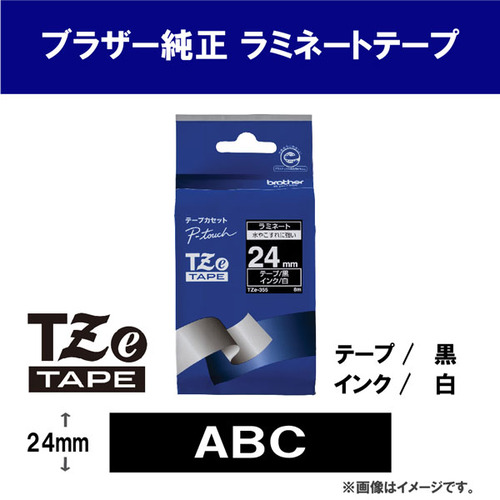 ブラザー TZe-355 ラベルライターピータッチ用 ラミネートテープ 黒テープ 白文字 幅24mm 長さ8m