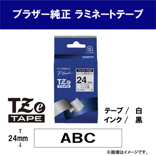 ブラザー TZe-FX251 ラベルライターピータッチ用 フレキシブルIDテープ 白テープ 黒文字 幅24mm 長さ8m