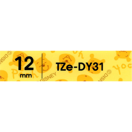 ブラザー TZe-DY31 ラベルライターピータッチ用 ラミネートテープ キャラクタータイプ プーさん イエローテープ 黒文字 幅12mm 長さ5m
