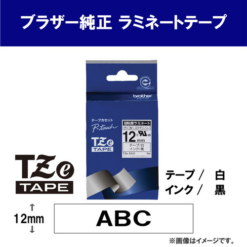 ブラザー TZe-S231 ラベルライターピータッチ用 強粘着ラミネートテープ 白テープ 黒文字 幅12mm 長さ8m
