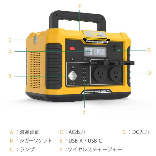 コンピューケース・ジャパン AD1000Y ポータブル電源 Togopower 933wh イエロー