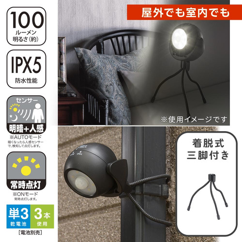 オーム電機 LS-B100JT-3K 乾電池式LEDガーデンライト 明暗・人感センサー 着脱式三脚付き