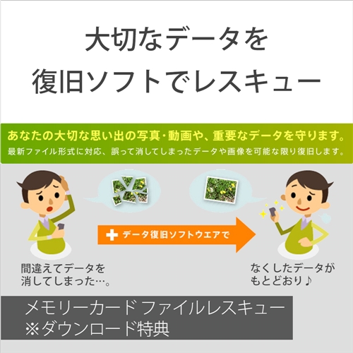データ転送時間がUSB2.0と比較し短縮されることで、高画質動画等の大容量データをより快適にご使用いただけます。なお、お使いのパソコンがUSB3.0に対応していなくても、USB2.0のポートに接続してご使用いただけます。
