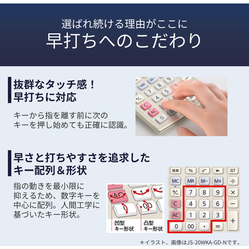 優れた早打ち対応設計、操作性、視認性など、ひとクラス上の性能が業務を強力にサポートします。検算タイプ。10表示。