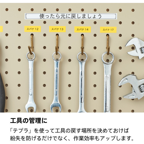 色・幅・素材が豊富な「テプラ」PRO用テープカートリッジ、4〜18mm幅に対応しています。