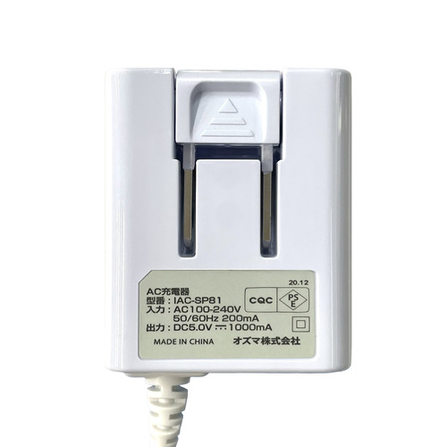 規格:入力/AC100V〜240V 50/60Hz・出力 DC5.0V 1000mA