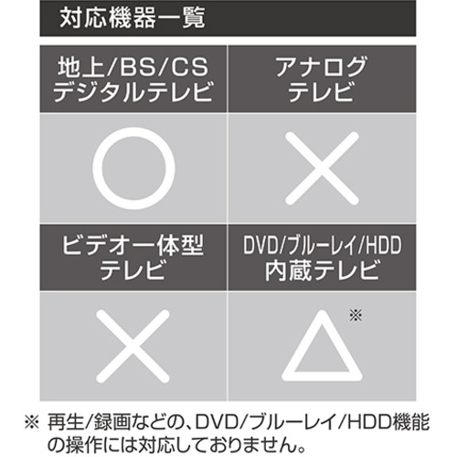 ※DVD/ブルーレイ/HDD内臓テレビでは、一部機種で対応していない場合があります。