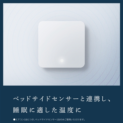 ●従来のエアコン本体のセンサーではなく、あなたのそばに寄り添う「ベッドサイドセンサー」が一緒に温度を感じて快適な睡眠環境を作る、「快眠環境運転」搭載。