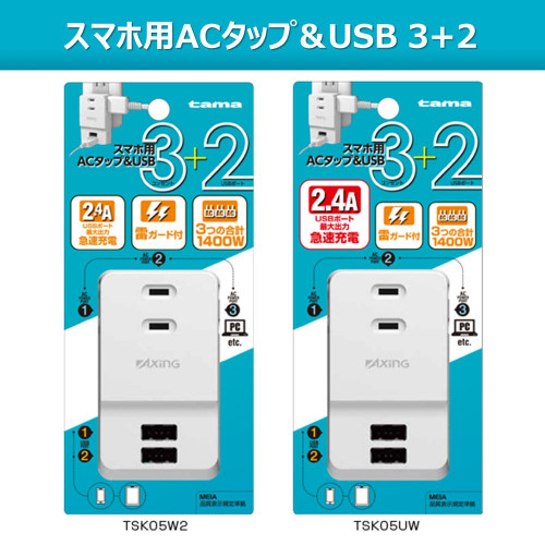 tama(多摩電子) TSK05UW スマホ用ACタップ&USB 3+2
