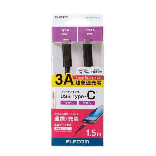 ELECOM(エレコム) MPA-CC13A10NBK USB3.1ケーブル(C-C、PD対応) 1.0m ブラック