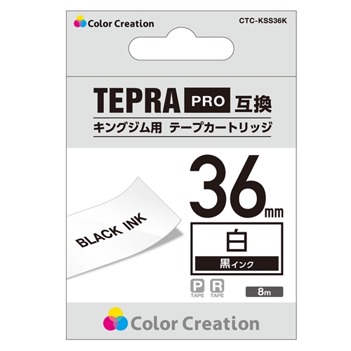 カラークリエーション CTC-KSS36K キングジム「テプラ」PROシリーズ用テープカートリッジ(白テープ/黒文字/36mm)