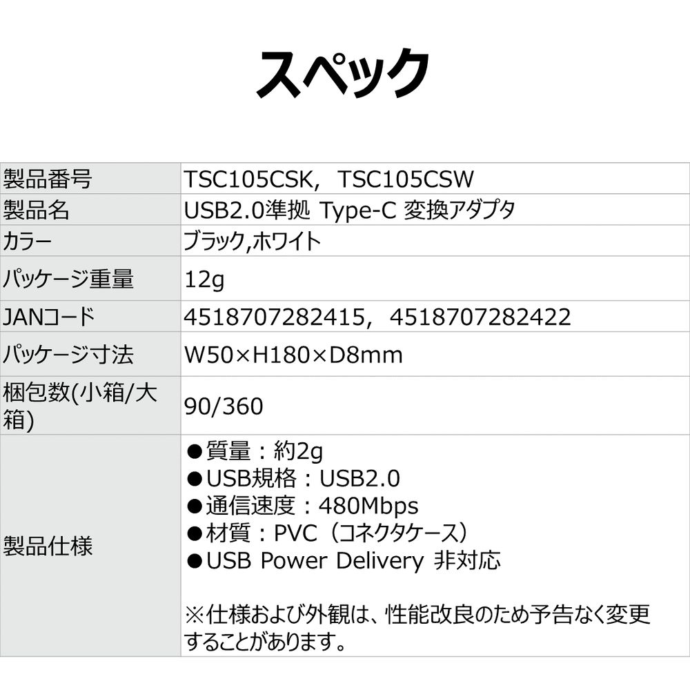 AxinG USB2.0準拠 microUSB⇒Type-C変換アダプタ(ホワイト) TSC105CSW