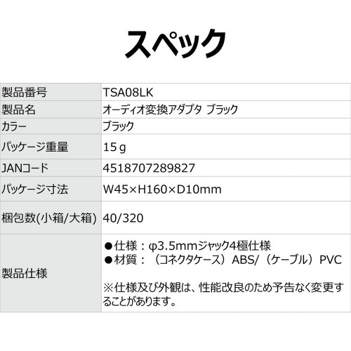 Lightning オーディオ変換アダプタ TSA08LK