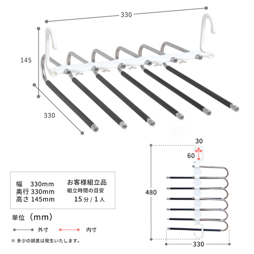 耐荷重:バー部分:約1.0kG(1本つき)合計約6kG"