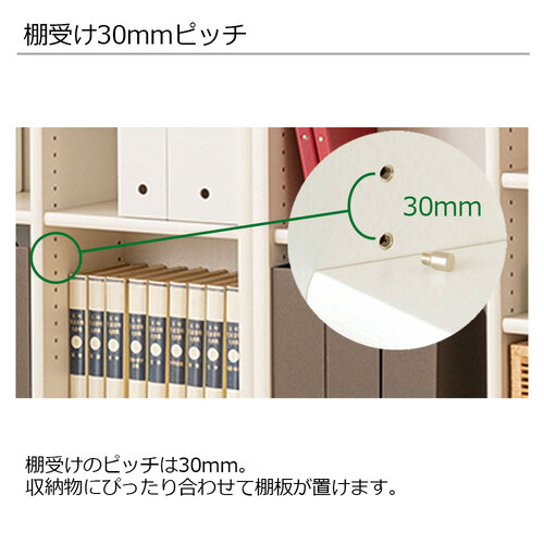 ●可動棚を30MM単位で細かく調整できるので、収納アイテムの高さに合わせて棚板が置けます。A4ファイルは2段収納可能です。