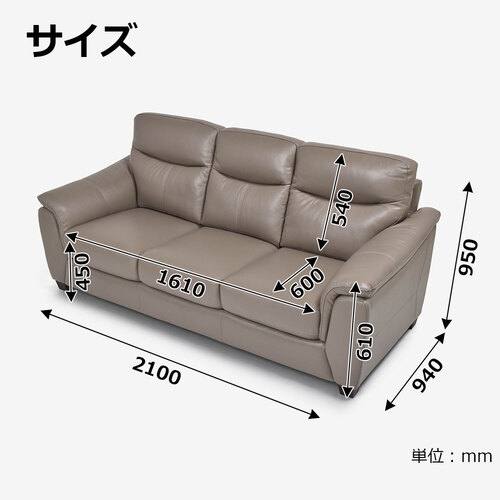 大塚家具 ソファ 3人掛け「Nジルバ」幅210cM 半革 #J-232E グラナイト色