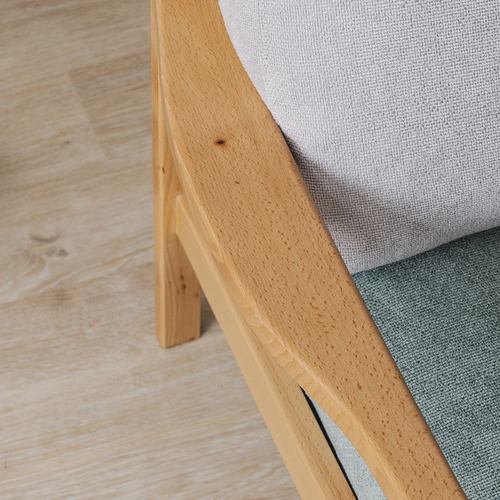 素材:布製、座:ウレタン、背:フェザー、木部:ビーチ材